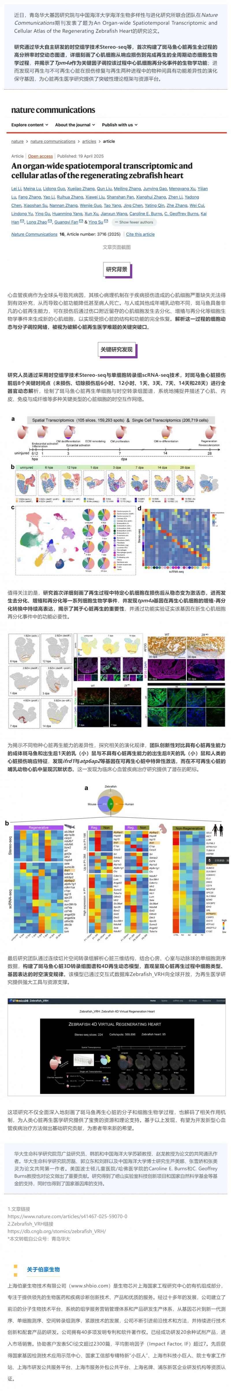 Nat. Commun | 首個斑馬魚心臟再生全過程高分辨率時空圖譜!Stereo-seq 助力揭示心
