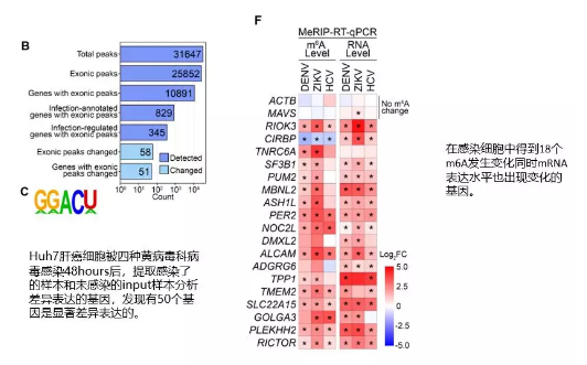 在 2019 年,Stacy M. Horner 教授緊接著又對上述病毒感染人類細胞后 m6A 修飾對機體的具體互作通路展開探討。