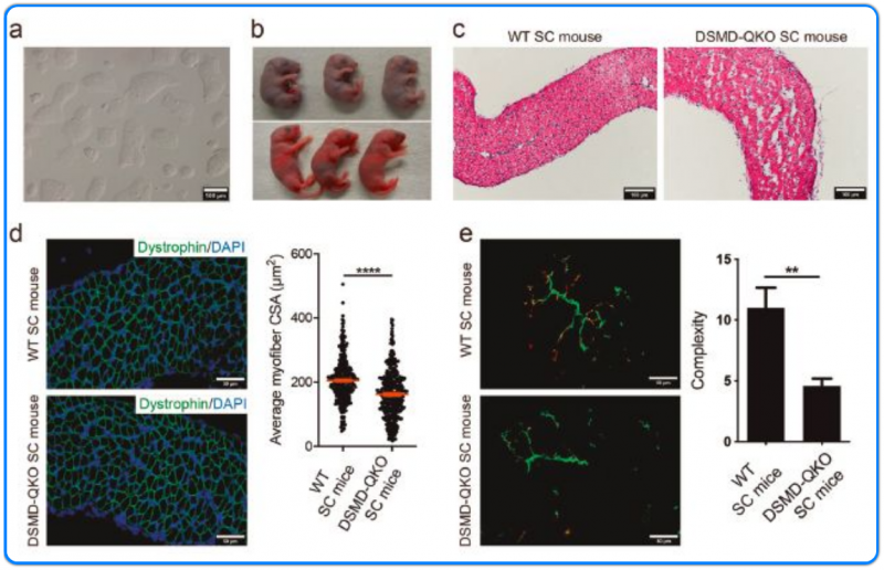 強(qiáng)直性肌營養(yǎng)不良 1 型(DM1)是一種復(fù)雜的遺傳性疾病,主要由肌營養(yǎng)不良肌強(qiáng)直蛋白激酶(DMPK) 基因 3’非編碼區(qū)的 CTG 重復(fù)擴(kuò)增引起的。DM1 疾病表型,嚴(yán)重程度和發(fā)病年齡變異性極高,主要癥狀包括肌強(qiáng)直、肌肉萎縮、肌無力、心臟傳導(dǎo)缺陷、白內(nèi)障和胰島素抵抗等。2020 年 2 月 5 日,伯豪客戶中科院上海生化細(xì)胞所的李勁松及胡蘋研究團(tuán)隊(duì)在 Cell Research 上聯(lián)合發(fā)表了題為“Dosage effect of multiple genes accounts for multisystem disorder of myotonic dystrophy type 1”的研究論文。研究人員利用半克隆技術(shù)將帶有突變 Dmpk、Six5 和 Mbnl1 的單倍體胚胎干細(xì)胞注射到小鼠卵母細(xì)胞中,建立攜帶多基因雜合突變的小鼠模型來模擬多基因劑量的減少,為開展 DM1 致病機(jī)制和藥物篩選研究提供了新模型。