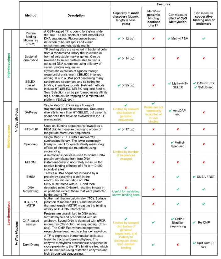 Table1. 判斷和識(shí)別 TF 特異性結(jié)合的實(shí)驗(yàn)方法