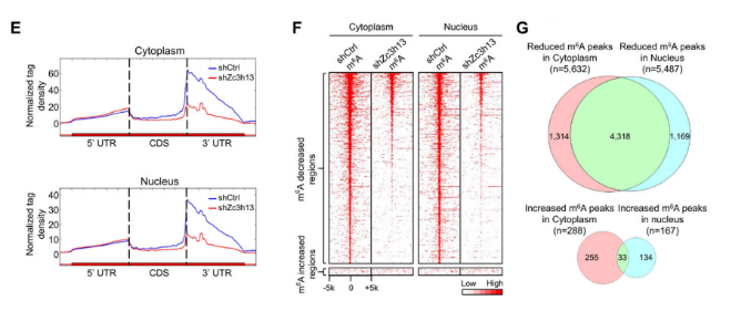 Fig2G  對(duì)核中 m6A 修飾和胞質(zhì)中 m6A 修飾求交集。