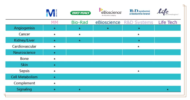 注:Milliplex 提供超過 8 個種屬 1500 個指標(biāo)的選擇,涵蓋腫瘤、免疫疾病、代謝疾病、心血管疾病、神經(jīng)退行性疾病、腎毒性、干細(xì)胞、信號轉(zhuǎn)導(dǎo)通路研究等十幾個熱門研究領(lǐng)域。了解新的 Panel 信息,請訪問 www.merckmillipore.com 或者聯(lián)系我們。