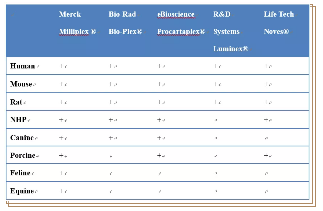 默克 Milliplex 試劑盒有較多物種選擇: