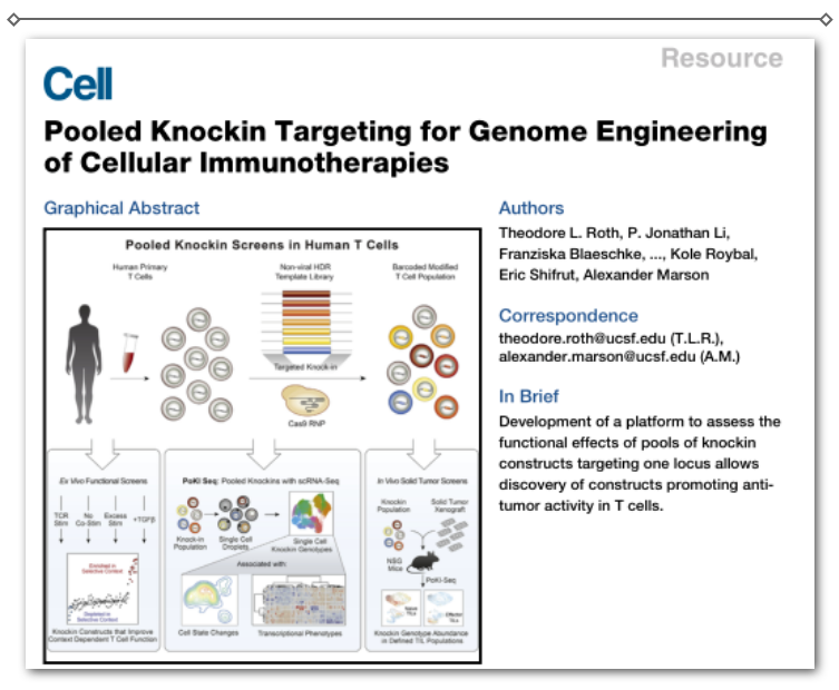 【摘要】基因修飾免疫細(xì)胞的過繼轉(zhuǎn)移為腫瘤免疫治療提供了廣闊的前景。CRISPR 靶向基因敲除可以改善細(xì)胞治療,但需要更多的高通量方法來檢測哪些基因敲除能增強(qiáng)體內(nèi)原代細(xì)胞功能。作者開發(fā)了一種廣泛適用于條形碼和跟蹤大型非病毒 DNA 模板的定向整合技術(shù),并將其應(yīng)用于在人類原代 T 細(xì)胞的聯(lián)合敲除篩選。將數(shù)十個獨(dú)特的條形碼模板整合到 T 細(xì)胞受體(TCR)基因座中,揭示了增強(qiáng)體內(nèi)外適應(yīng)性的基因結(jié)構(gòu)。作者進(jìn)一步開發(fā)了聯(lián)合靶向敲除測序(PoKI-seq),結(jié)合單細(xì)胞轉(zhuǎn)錄組分析和聯(lián)合敲除篩選來檢測細(xì)胞豐度和細(xì)胞在體內(nèi)外的狀態(tài)。該平臺鑒定了一種新的轉(zhuǎn)化生長因子 b(TGF-b)R2-41BB 嵌合受體,可提高實體瘤的清除率。