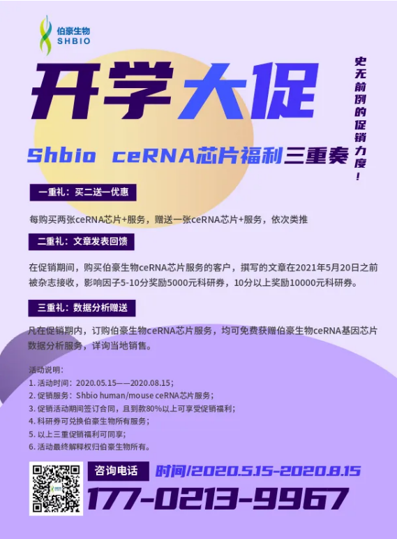 Shbio ceRNA 芯片自推出以來,助力伯豪客戶發(fā)表了多篇高分文章。來自天津平津醫(yī)院的研究團(tuán)隊(duì)借助 Shbio human ceRNA 芯片 V1.0 篩選膠質(zhì)母細(xì)胞瘤(GBM)中特異高表達(dá)的 circRNA/lncRNA,通過進(jìn)一步的分子機(jī)制及功能研究發(fā)現(xiàn) circNT5E 能夠作為 miRNA-422a 的海綿吸附體,抑制其活性,進(jìn)而影響膠質(zhì)母細(xì)胞瘤的腫瘤發(fā)生。來自天津的另一研究團(tuán)隊(duì)利用 Shbio human ceRNA 芯片 V1.0 檢測胃癌病人血漿外泌體中關(guān)鍵的 circRNA,通過一系列的研究發(fā)現(xiàn)外泌體中的 circRNA ciRS-133 可以通過靶向 miR-133/PRDM16 途徑促進(jìn)白色脂肪褐變。