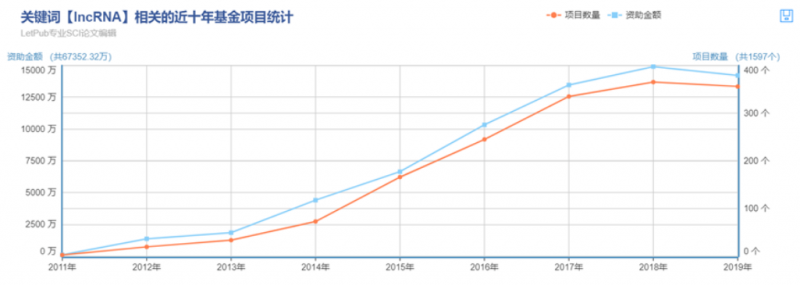 近十年國(guó)自然 lncRNA 相關(guān)項(xiàng)目數(shù)據(jù)