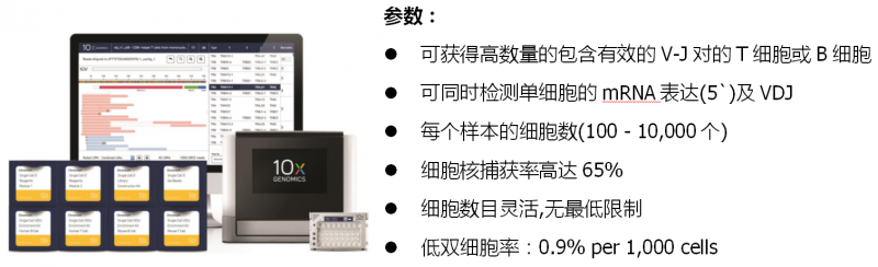10X genomics 提供了全面的單細胞免疫分析方案,可以在單細胞細胞基礎上同時檢測人類或小鼠的適應性免疫反應和數(shù)以萬計的 T 細胞和 B 細胞的免疫系統(tǒng)。通過精簡的工作流程,可以實現(xiàn)從樣品到文庫準備、免疫測序和軟件分析全套解決方案,揭示 T 和 B 細胞多樣性、V(D)J 重組和免疫細胞分析。