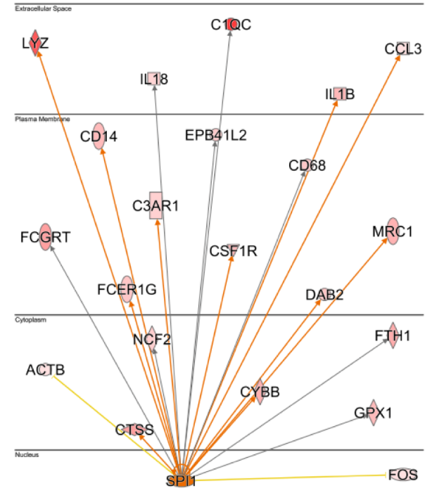 轉(zhuǎn)錄因子 SPI1(PU.1)激活了該亞群 marker 基因的表達(dá),并且 SPI1 本身也是這個(gè)亞群的 marker 基因